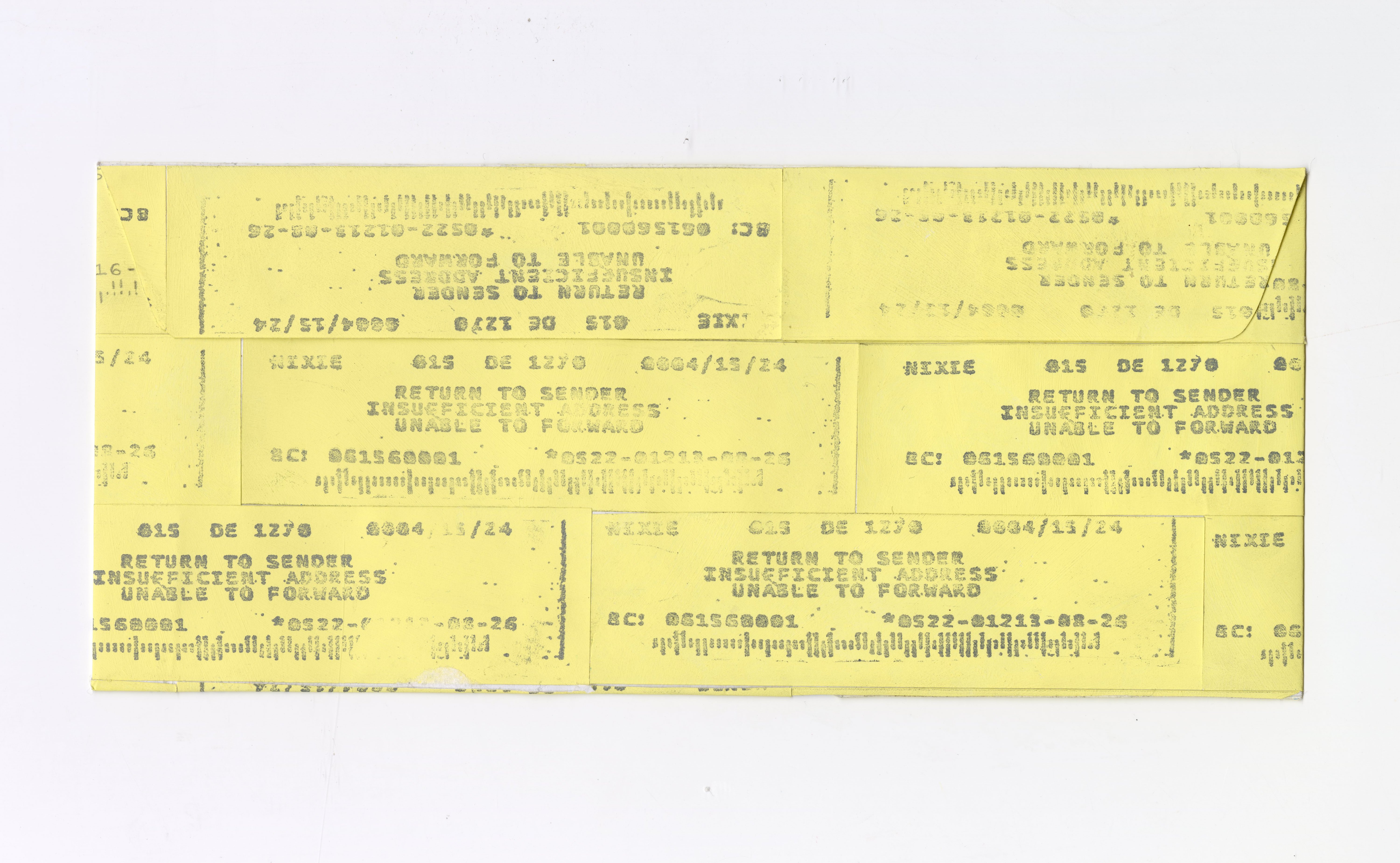 Found photographs inside envelopes constructed with fabricated “return to sender” labels